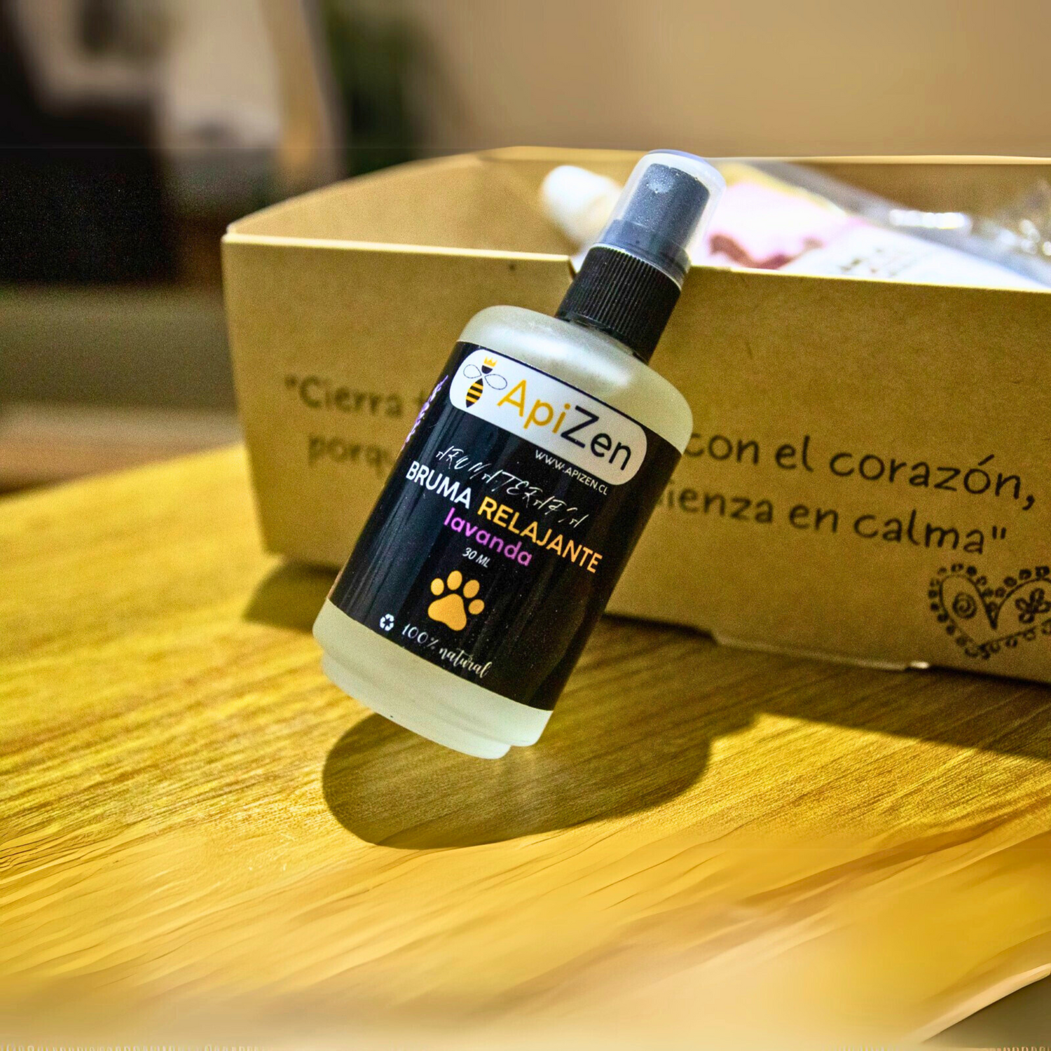 - Spray de Aromaterapia Bruma Relajante de Lavanda APIZEN: Una mezcla suave y segura para mascotas, ideal para rociar en su entorno y generar un ambiente de calma instantánea.